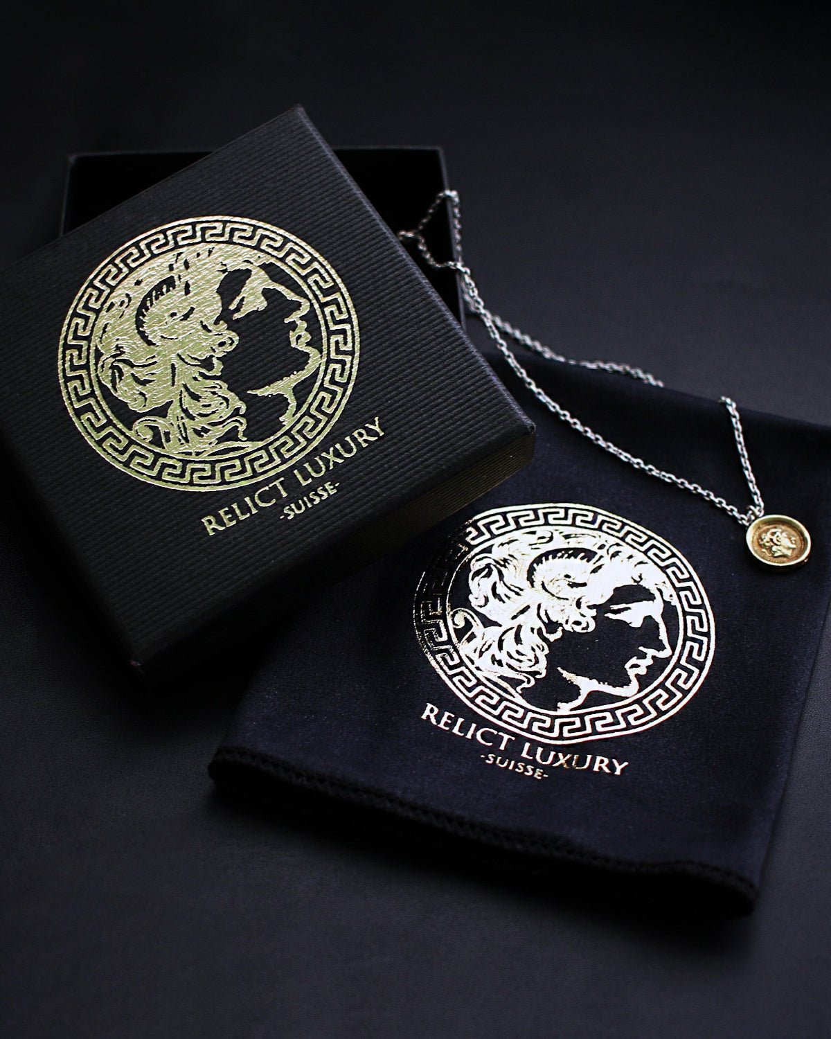 - Accessoires : Boîte à bijoux Relict Luxury et chiffon de polissage pour préserver l’éclat de votre bijou.