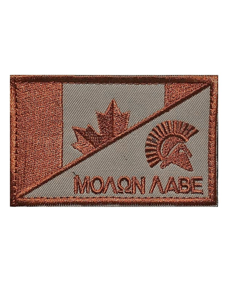 Il motto "Molon Labe" – "Vieni e prendile" – ha radici nella storia greca e rappresenta coraggio e determinazione. Combinato con la bandiera canadese in tonalità bronzo, il patch con velcro "Molon Labe" simboleggia la libertà, il coraggio e l’impegno per la propria identità. La lavorazione dettagliata e il design distintivo rendono questo patch un’aggiunta significativa e di grande impatto.