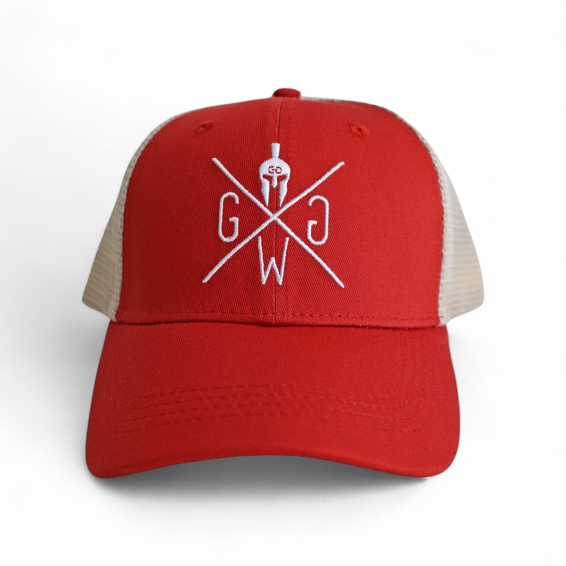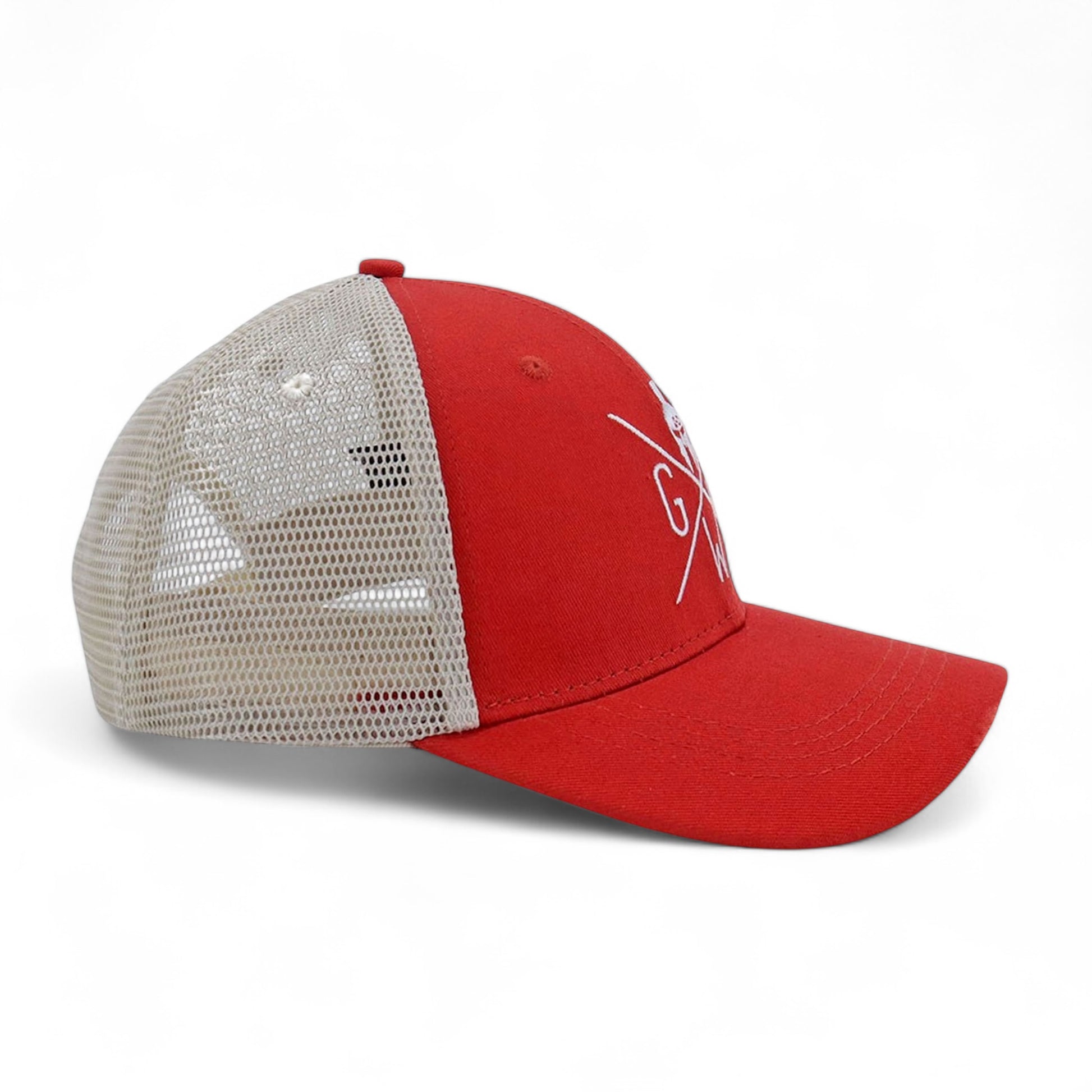Il Venice Trucker Cap di Gym Generation combina un design sportivo a caratteristiche pratiche. Con la sua combinazione di colori accattivante – rosso acceso, ricamo bianco e retro in rete beige – questo cappellino non è solo un punto focale del tuo look, ma offre anche il comfort ideale per ogni tua attività.