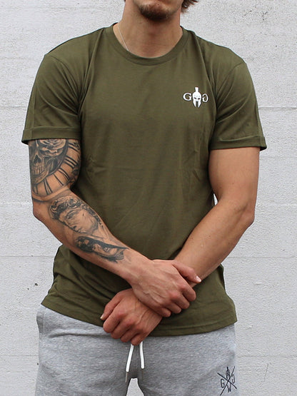 Das Gym Generation Fitness Shirt in Olive vereint erstklassige Materialien, durchdachtes Design und sportliche Eleganz. Mit seinem markanten Spartaner Helm Logo setzt es ein unverkennbares Zeichen für Stärke und Stil, während die hochwertige Verarbeitung für dauerhafte Qualität und Komfort bürgt.